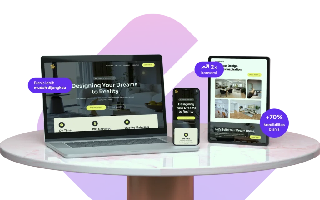 Website profesional menciptakan citra bisnis yang terpercaya, serius, dan kompeten di mata calon pelanggan.